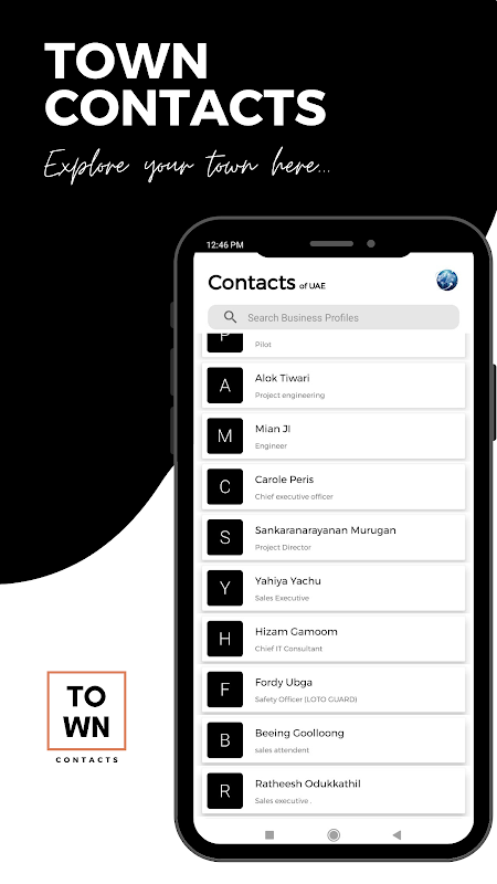 町のどこでも、いつでも、どこでも、ビジネスマンの情報を検索できます。専門家、企業、その他すべての企業を検索して、連絡先番号を取得できます。
