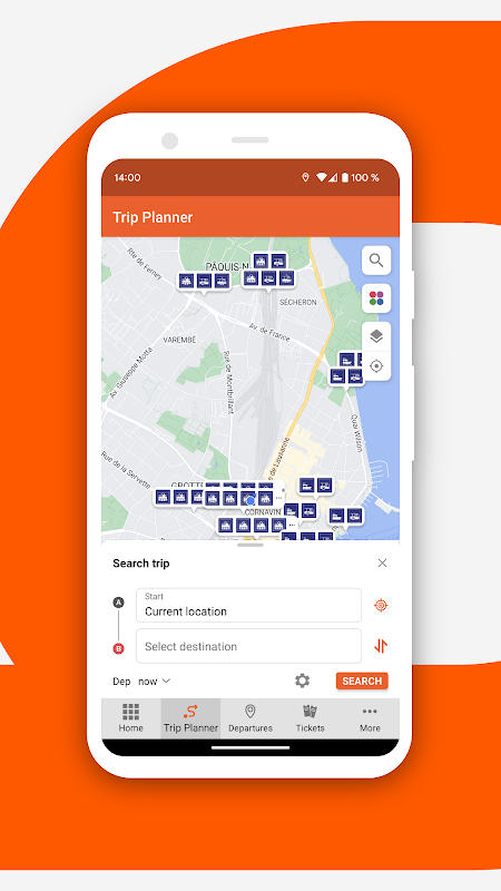 次の出発、旅行プランナー、停留所の場所、SMS チケットを確認できます。