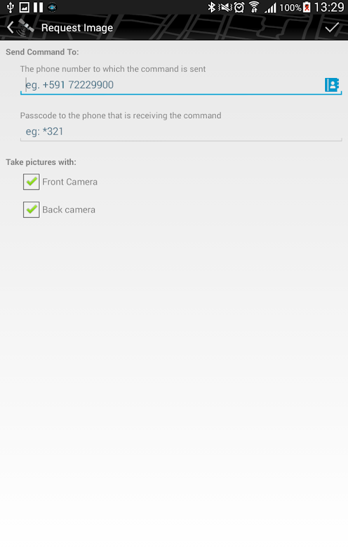- You can take photos remotely by SMS commands with the two cameras