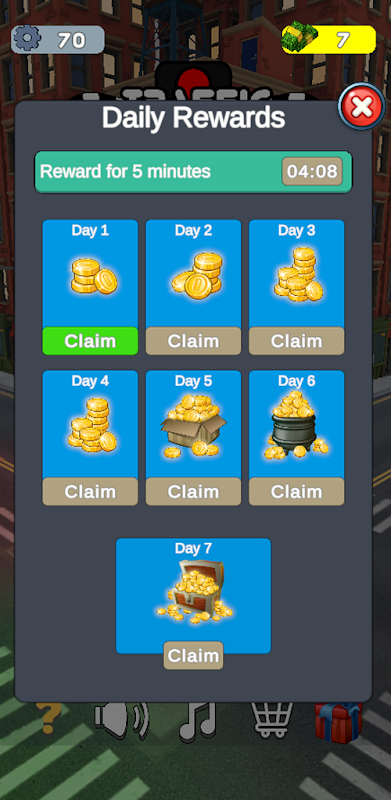 毎日の報酬:毎日ログインして、追加のギアやお金などの特別な報酬を受け取ります。