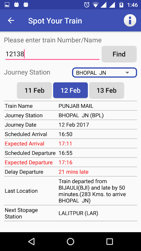 Just enter train number or train name or source or destination or a combination of these and get all the accurate information about trains timing and its location in seconds.