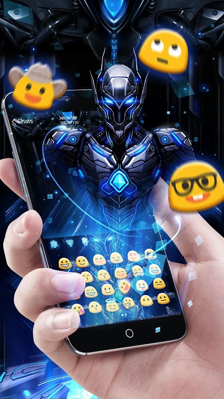 The fantasy machinery keyboard with blue neon keypads, machinery front keypad, technical transform robot as background, it will make your phone screen look more gorgeous and fantasy.
