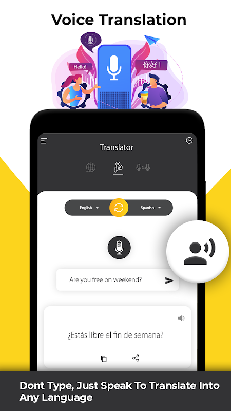 Speak and Translate Freeは、音声翻訳者を世界言語の無料翻訳アプリに変換するように特別に設計されています。この簡単な通訳アプリLanguage&Voice Translatorを使用して、音声翻訳者から世界最高の言語への多言語の音声からテキストへの音声を検出し、音声をすべて翻訳できます。スピークインタープリターアプリを使用すると、音声入力をターゲットの翻訳結果に変換できます。ライブ翻訳音声で無料の言語翻訳をお楽しみください。入力または出力の結果を話します。音声からテキストへの変換をスマートな変換スタイルに変更し、世界言語の単語翻訳者がさまざまな言語でコミュニケーションできるようにします。
