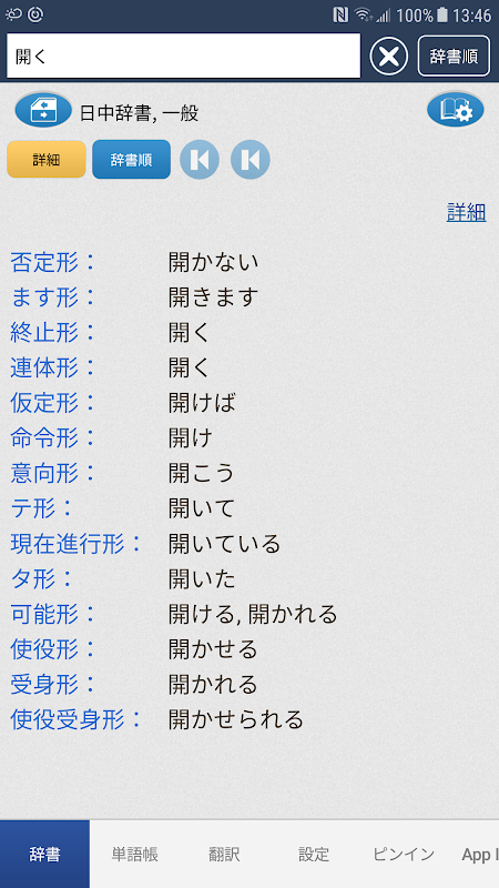 日中/ 中日単語の詳細、また辞書順による表示で単語をチックするのも一つの楽しみ!