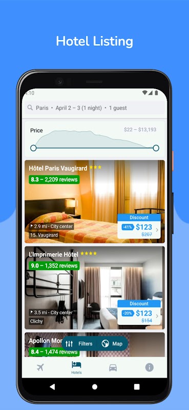 -使いやすいマップビューで、周辺のホテル、モーテル、旅館を検索します。
