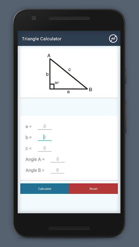 Triangle Calculator Free is a calculator designed to give the two unknown factors in a right triangle, assuming two factors are known. Again, this right triangle calculator works when you fill in 2 fields in the triangle angles, or the triangle sides.