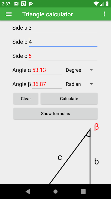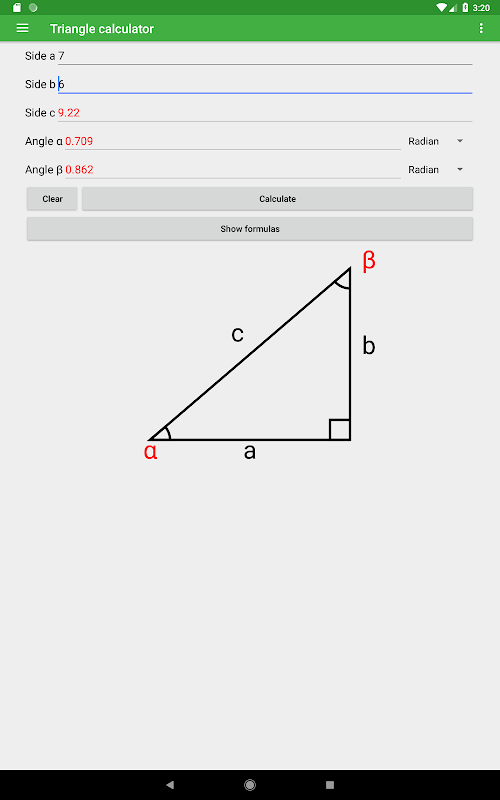 このアプリは、2つの値を入力することで、直角三角形の辺と角度を計算するための簡単な方法を提供しています。アプリは素晴らしいデザインと可能な限りあなたのワークフローのように効率的にするために度とラジアンを切り替えるためのオプションを持っています。