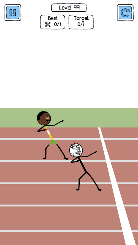スティックマンがゴールを完了するのを助けるためにカットラインを描く