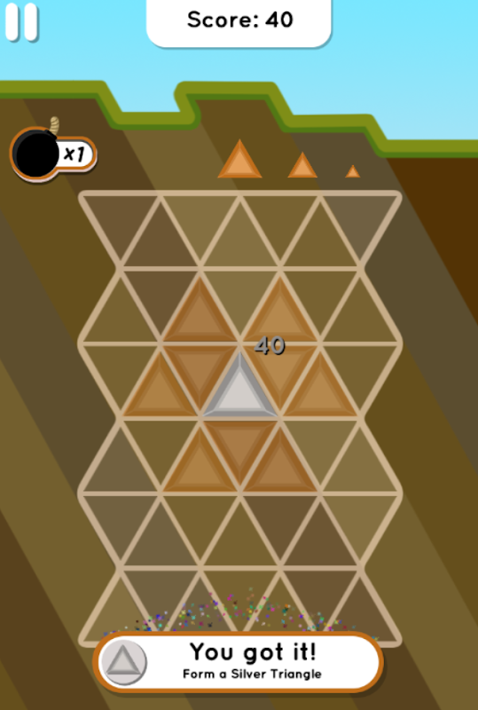 ‣ Now build a big triangle out of the new colour triangle! When the grid is completely filled its game over.