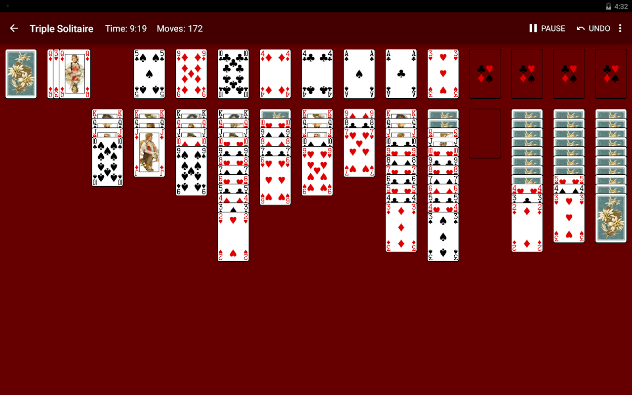 Three deck variation of the classic three turn Solitaire, also known as Klondike, built specifically for tablets.