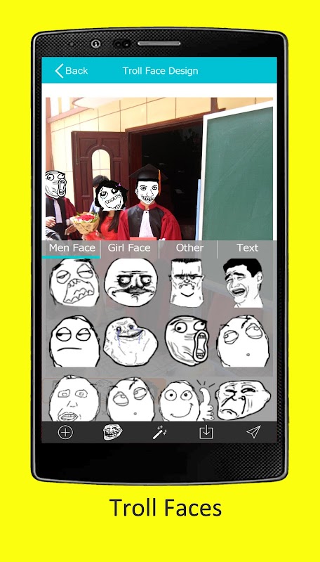 Troll Faces is a great app to decorate your photo with funny troll faces, emoji faces to make it more funny. With simplified UI, you can easy edit your photos, even though you are a kid, teenage or adult.
