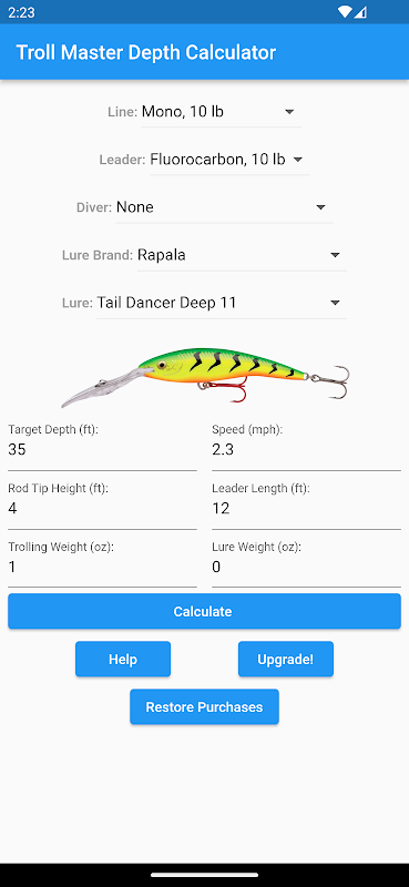 このアプリは物理ベースの計算を使用して、入力に基づいてルアーのトローリングの深さを正確に決定します。計算は水質試験によって検証されています。