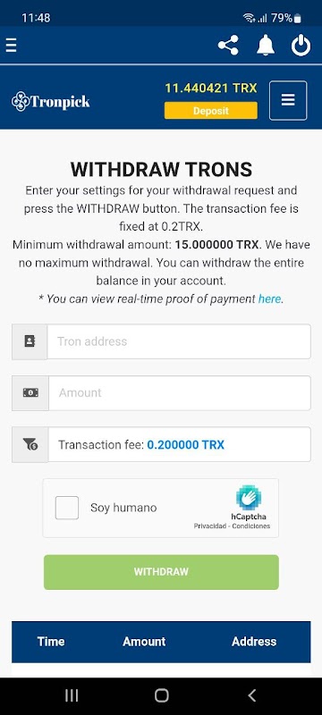 このアプリケーションでは、60 分ごとに Tron (TRX) の端数を無料で獲得できます。