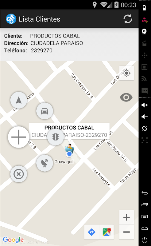 * El gerente puede obtener una ruta de navegación desde su ubicación a cualquiera de los clientes pertenecientes a su cartera en su zona.