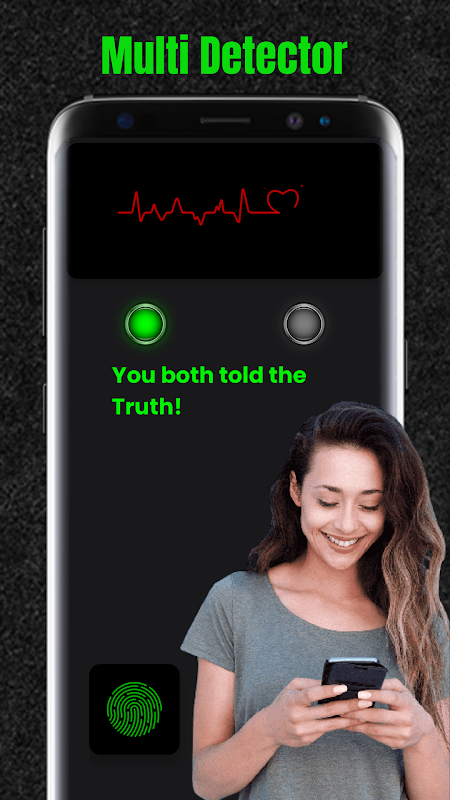 真実か嘘かは、指紋で決まるものではありません。 この偽の嘘発見器はいたずらアプリです - 実際にはそうではありません