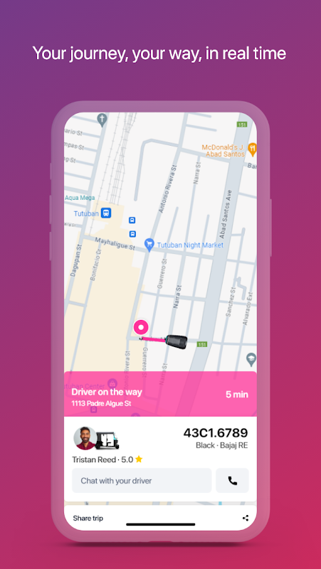 · 電話またはメッセージでいつでもドライバーに連絡できます