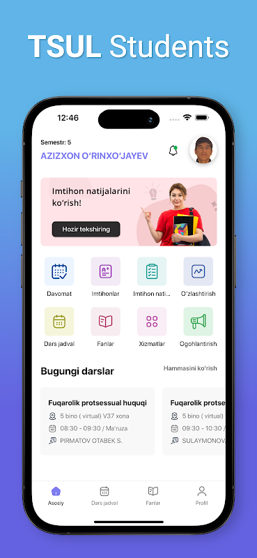 これはタシケント州立法大学のモバイルアプリケーションです。