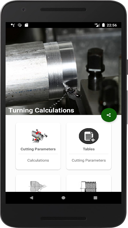 The application allows the user to calculate the Cutting Speed, RPM, Cut Time, Taper Turning, among others ...