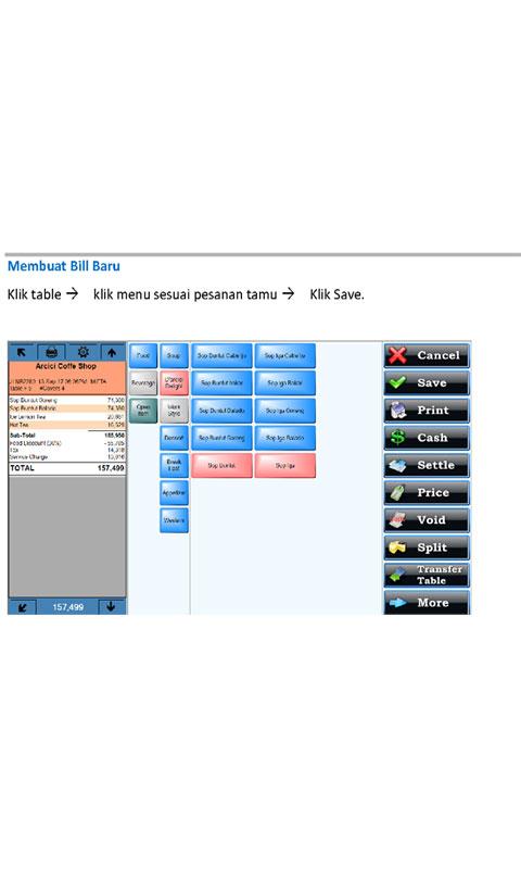 Proses login, membuka bank, transaksi, discount plan, split bill, close shift, reporting dan proses lainnya.