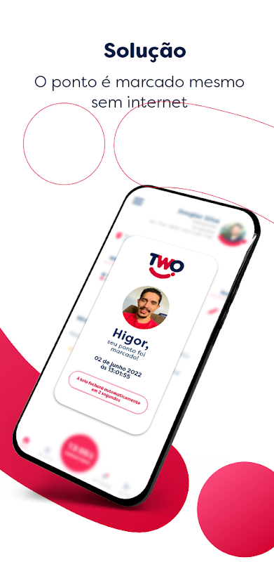 O app permite o uso compartilhado (mais de uma pessoa registrar o ponto no mesmo dispositivo), tem a opção de marcação de ponto com foto e possui lembrete de registro de ponto esquecido do dia anterior.