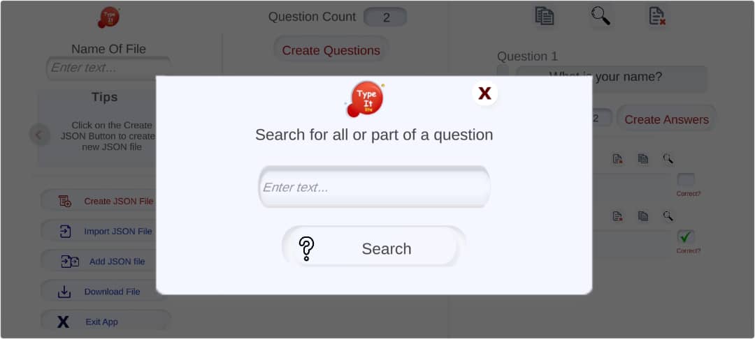 デバイスから質問と回答を簡単に入力し、JSON 形式で保存します。