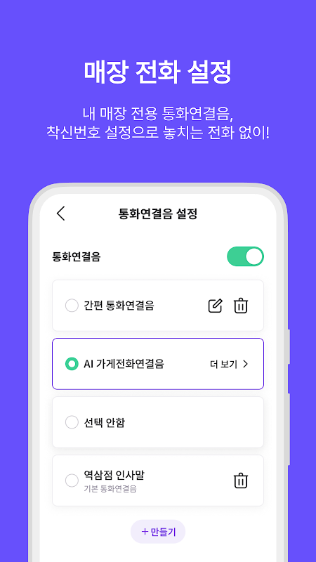 ②通話接続音の設定:時間別/曜日別の通話接続音を設定することができ、直接コメントを作成して通話接続音を製作することができます。