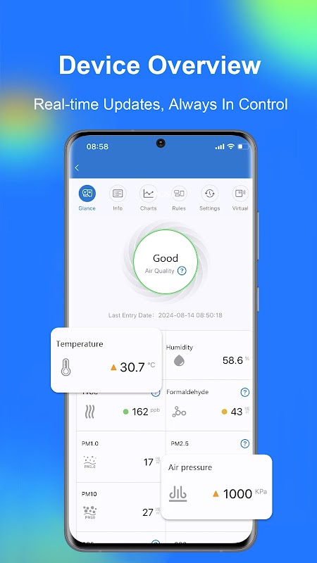 -データモニタリング: リアルタイムデータと履歴データをグラフィック形式で表示し、いつでもどこでもデバイスに関する情報を提供します。
