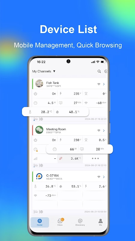 -デバイス管理: データの収集とアップロードの頻度を調整し、仮想フィールドを構成し、デバイスをグループに編成します。デバイスを他の人と簡単に共有できます。
