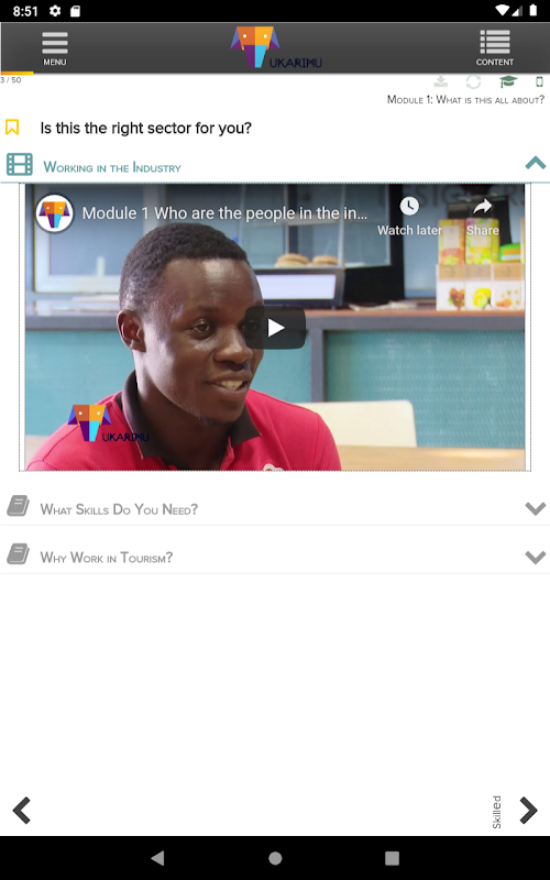 This app contains a course on tourism & hospitality which, except for the videos, can be accessed offline. This course is supplementary to the class-based trainings of Ukarimu Academy, but can also be used by anyone who just wants to improve his/her skills. It is focused on entry-level employees and focuses on various aspects of tourism & hospitality.