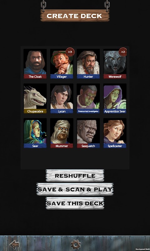 プレイヤー数、村と狼男のバランス、ゲームの長さ、モデレーターの難易度、役割情報、特定の役割など、さまざまなデッキ属性を使用してカスタムのアルティメットワーウルフカードデッキを構築します。後で参照できるように、これらのデッキをアプリに保存します。それらのカードをプレーヤーに配り、カードの裏側、プレーヤーの名前、プレーヤー自身の顔をすばやくアプリにスキャンします。ゲームを開始すると、アプリは、夜に各役割を目覚めさせ、狼男の標的にされたプレーヤーをマークし、プレーヤーを排除することを含む、毎日と夜のフェーズを案内します。
