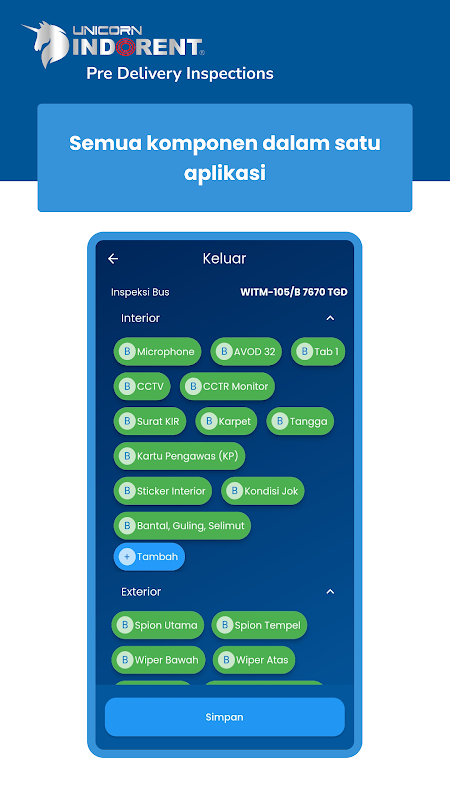 Unicorn PDI は、整備士による Unicorn Indorent バスのメンテナンスを容易にするために登場しました。整備士がユニコーンバスの状態や状態を確認・記録できる機能があり、バスの品質やメンテナンスを最大限に高めて運行します。