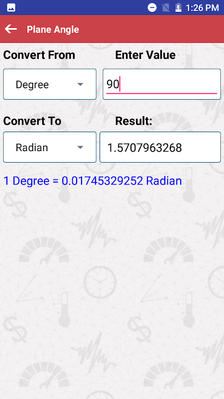 Unit Converter App allows a simplest way for quick and accurate conversion of all types of measurement units. This App is useful for engineers or anyone else whose activities require working with quantities measured in different units. You can use this unit converter app for converting different types of unit such as Temperature Length Energy Area Speed Digital Storage Volume Frequency Plane Angle Power Mass Fuel Economy Pressure Time Data Transfer Rate unit.