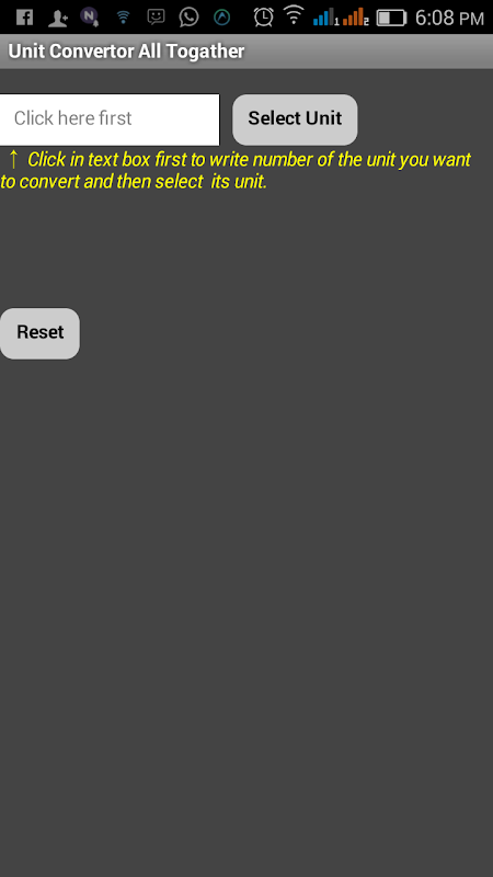 © All the rights of the photographs, logo and the title of the software “Unit Convertor All Togather” are reserved by the app developer. By downloading and using this application (hereafter called the App/Application/Software), you indicate that you understand and accept the following terms of use and that you agree to abide by them.If you are no agree to these terms ,then please do not use the App. An application user must use latest released version of the application. All the data and details provided on this application Unit Convertor All Together are provided with care. But the information is collected from various sources. It may contain human errors as well as technical errors. All the users of the app are requested to double check the details obtained from the application before using them. The app developer is not responsible for any loss or problems due to the use of information provided in the application Unit Convertor All Together. The app may misbehave in some devices. The app developer is not responsible for such technical issues. The application, through its unit convertor just suggests the possible numbers of units as per ratios popular many territories of India. The ratios of units differ in various Territories.The app developer reserves the right of not being responsible for the topicality, correctness, completeness, misuse, disturbance or quality of information provided in the application. Liability claims regarding damage caused by the use of any information provided including any kind of information which is incomplete or incorrect will therefore be rejected. 06-12-2014 Palanpur