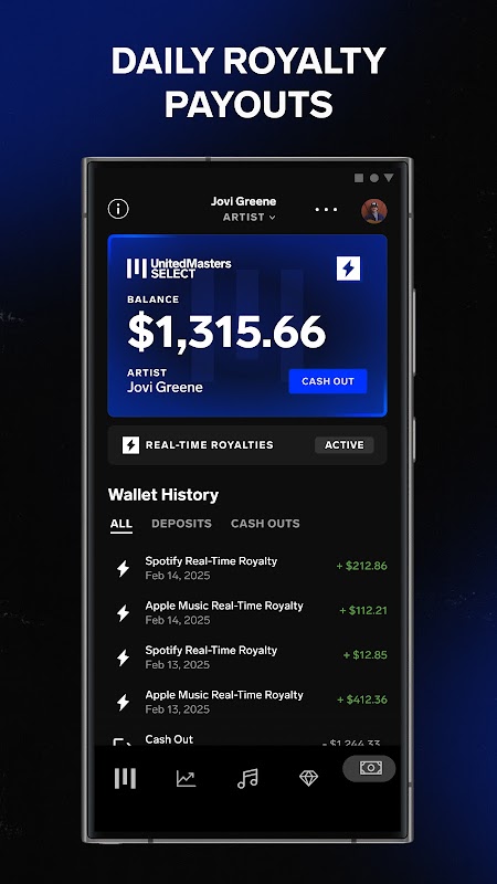 • Create and manage Splits via the Splits Dashboard (found in your UnitedMasters Wallet)