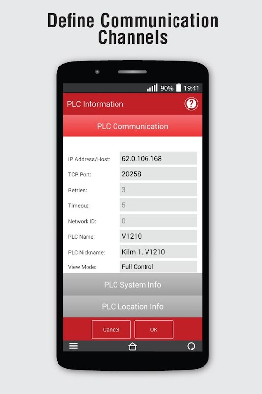 PLCSを追加するには、+をタップし、コントローラとの通信チャネルを設定します。