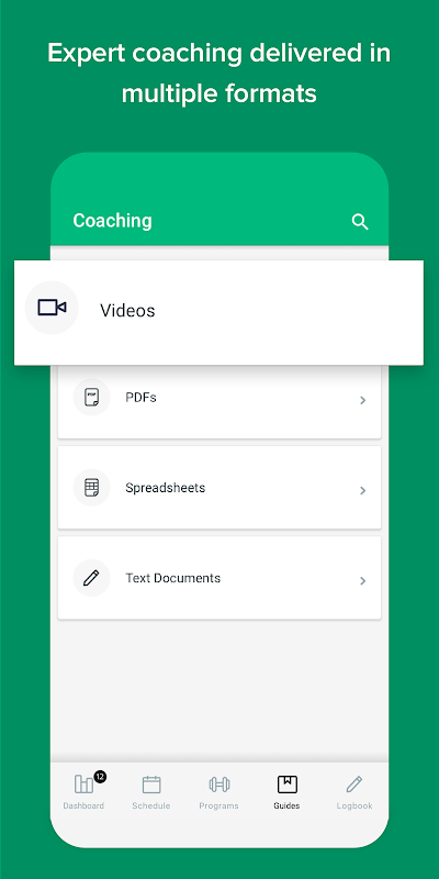 -あなたの旅に沿ってあなたを教育するためのビデオ、PDFなどを備えたコーチングセクションを見つける