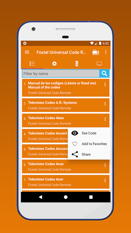 Los Códigos del controlador remoto de tu Foxtel Universal esta app te permite seleccionar rápidamente miles de códigos de fabricantes de tv para que pueda configurar su mando o (Control) para la televisión. Codigo de controlles universales de Foxtel, Codigo de controlles universales Para Foxtel