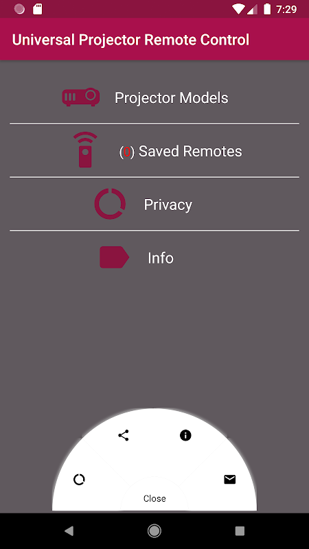 このユニバーサル プロジェクター リモコンは、インストールしてブランドを選択するだけのプッシュ アンド プレイ アプリです。