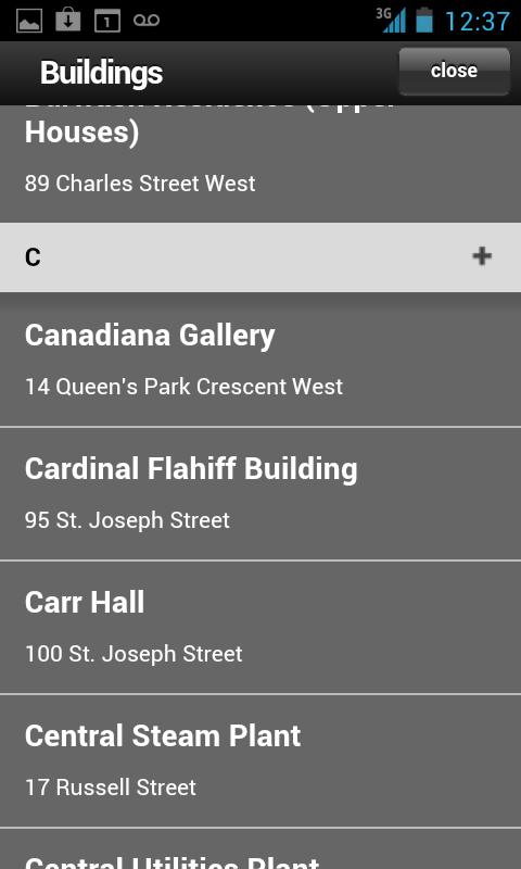 Note: Support for this App has been discontinued. Please download UofT Multi-Campus Map instead. (Link: https://play.google.com/store/apps/details?id=ca.utoronto.mobilemap&hl=en, market://details?id=ca.utoronto.mobilemap)