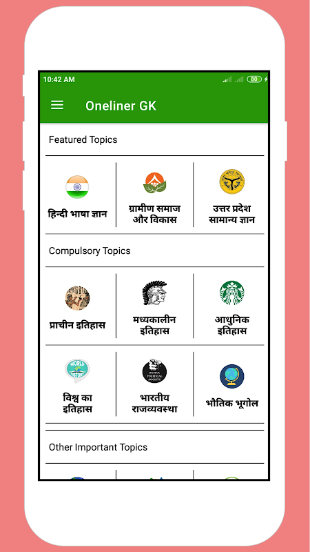 UP Lekhpal Oneliner Guide had all the questions from various previous year examination of Uttar Pradesh State such as previous year Uttar Pradesh Lekhpal Examination, Chakbandi Lekhpal, Uttar Pradesh Police Recruitment, UPSSSC and other one-day examinations. All the questions are most important to make a good strategy to clear this Uttar Pradesh Lekhpal Examination (UP Lekhpal). The questions those are available in this app are appeared in the previous year examinations so these questions are most important at the point of view of upcoming examinations. By learning these questions students or aspirants can easily know or find that what will be level of examination and which type of questions will be appear. UP Lekhpal Oneliner Guide have separated topics such as if users will want to learn Hindi language then they will also get all the topics of Hindi language like रस‚ अलंकार‚ समास‚ पर्यायवाची शब्द‚ विलोम शब्द and other topics to the related subjects.