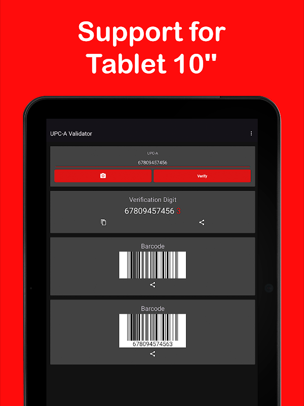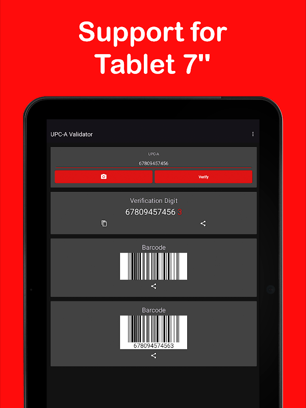 バーコードを検証するアプリケーションは非常に使いやすく、UPC-A バーコード (12 桁) を入力し、「検証」ボタンを押すだけでその情報が表示されます。検証番号 (赤色でハイライト表示) が取得され、それをコピーしたり共有したりできます。 UPC-A バーコードに対応するバーコードも生成され、簡単に共有できます。