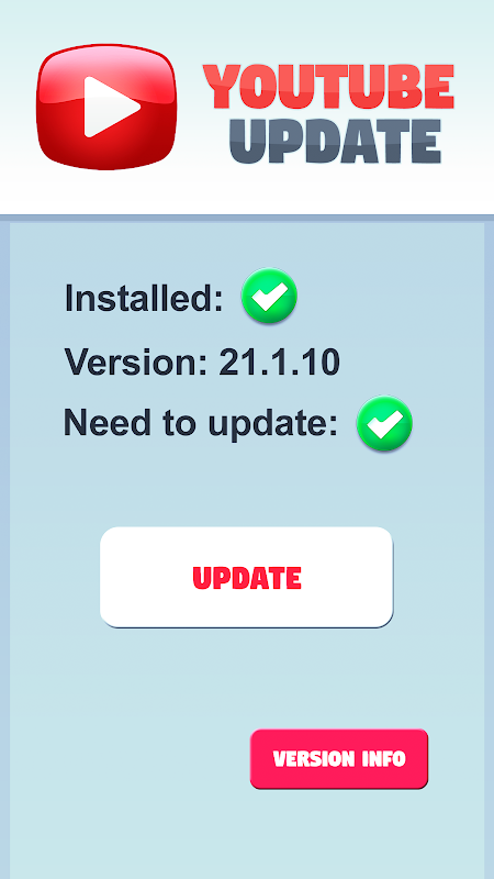 If your ỲouTubȇ app sometimes is crashing and you want to fix ỲT you should update it to the newest available version. Our app is a quick shortcut to Googlȇ Plȁy site where you can update Youtube in one click! Get our app and download actualization for ỲouTubȇ app on your phone!