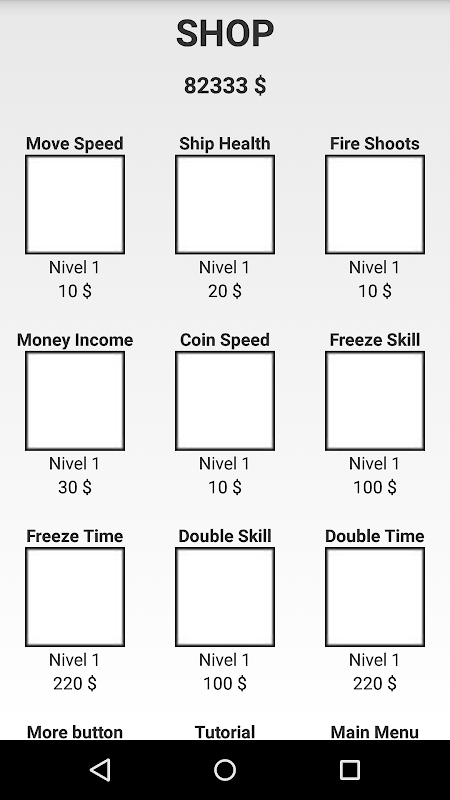 -シールド、移動速度、射撃攻撃速度、コインの速度、コインの量などをアップグレード