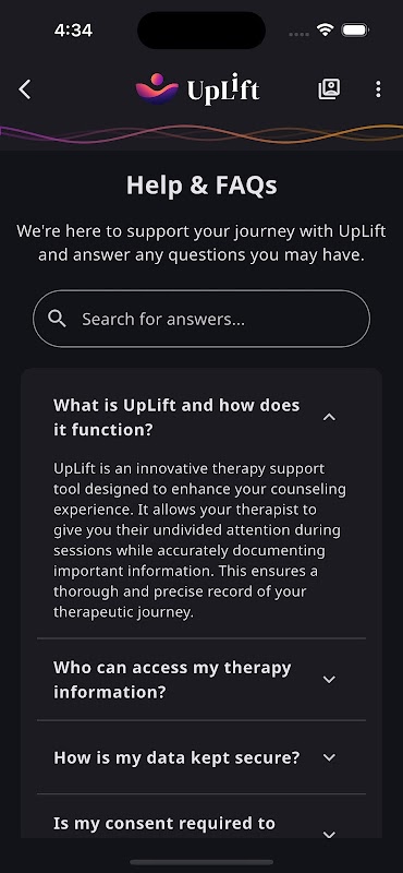 UpLift は、治療セッション間のギャップをシームレスに埋める革新的な AI を活用した治療コンパニオンであり、メンタルヘルスへの取り組みを変革します。 UpLift はメンタルヘルス専門家と協力して、必要なときに継続的で個別のサポートを提供します。