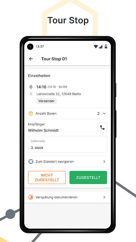 Urbifyアプリは、配信ドライバーがUrbifyシステムに接続し、すべての関連情報を常に手元に置いておくためのデジタルインターフェースです。 Urbifyは、GPSとロケーション技術を使用して、配信プロセス全体にわたって透明性を作成し、定義されたプロセスに沿った非インタラクティブな配信を可能にします。アプリ内ナビゲーションの助けを借りて、配達ドライバーは配達先住所をすばやく見つけることができ、それ以上のアプリケーションは必要ありません。