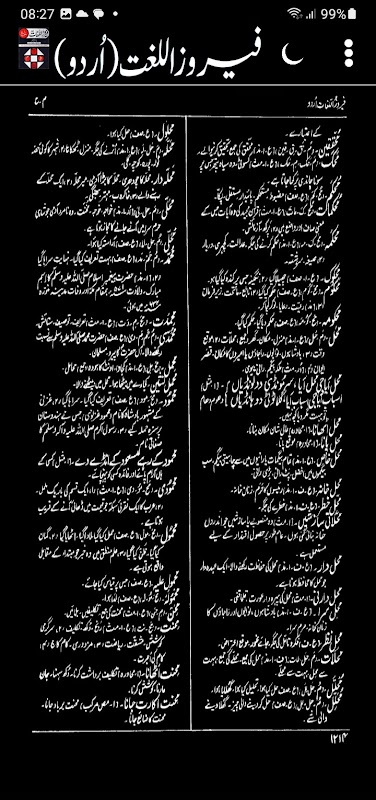 Feroz ul Lughatは、Alhaj MoulviFerozuddinによって作成されました。これはウルドゥー語からウルドゥー語への辞書であり、120,000語、イディオム、フレーズ、外国語の単語(ウルドゥー語で使用)、科学技術用語、および文法的な参照で構成されています。