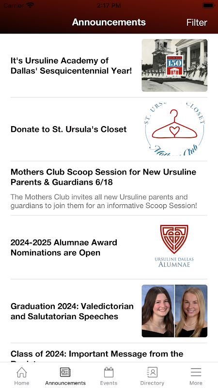 Ursuline Academy of Dallas アプリに表示される情報は、Ursuline Academy of Dallas の Web サイトと同じ情報源から取得されています。プライバシー管理により、機密情報は許可されたユーザーのみに制限されます。