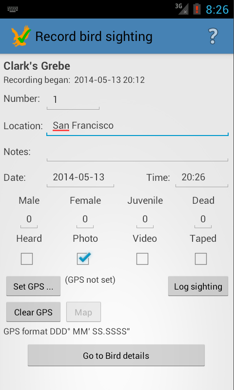 a. Logging bird sightings (with GPS co-ordinates if your phone has a GPS)