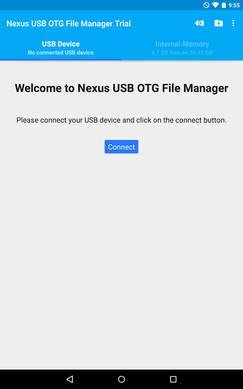 これは、ネクサスのためのUSB OTGファイルマネージャの無料の試用版です。あなたは、ファイルのコピーと無効になっているファイルのオープンを除いてUSBデバイス上のすべての機能をテストすることができます。