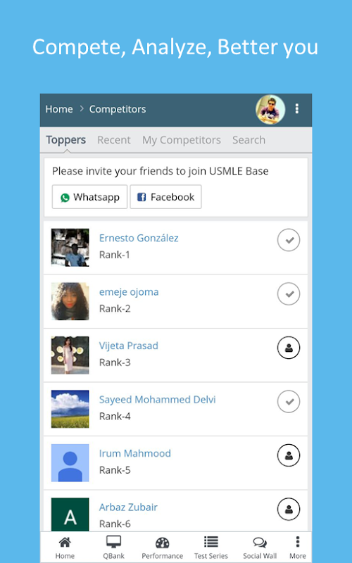 Post questions, Ask doubts and Discuss with people in Social Wall. You are also notified with “4 USMLE Questions of the day” on daily basis in the social wall.